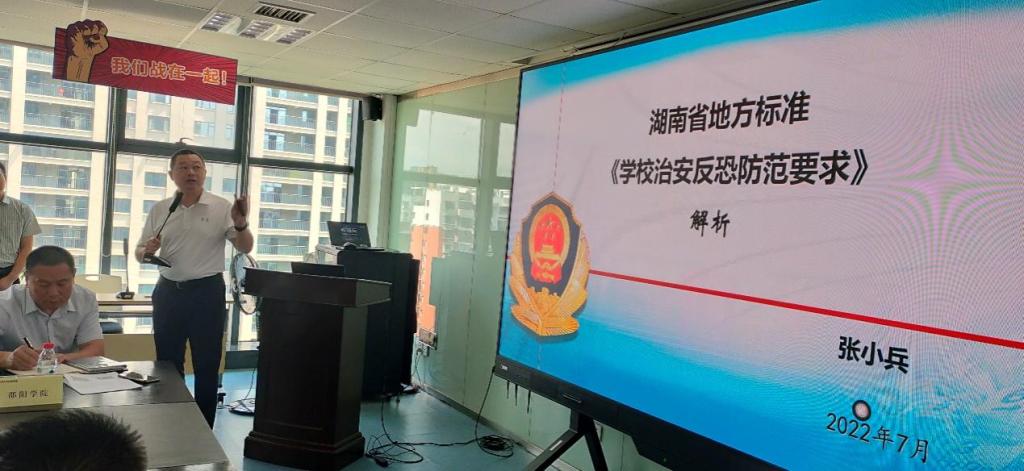 会上,湖南大学党委保卫部(处)副部(处)长赵震宇结合学校整体环境介绍了安防系统建设情况,并就学校安防建设未来发展方向进行了交流。湖南信息学院保卫处处长陈强以智慧安防建设为主题作了经验分享。张小兵向与会人员详细解读了湖南省地方标准《学校治安反恐防范要求》,针对全省保卫管理员和保安员职业技能竞赛相关内容进行了说明。海康威视数字技术股份有限公司应邀就高校安防物联网及物信融合方案成功案例作了分析报告,为湖南高校技防建设注入新动能。随后,与会人员围绕高校技防建设工作中的难点和热点问题进行了深入地探讨,现场气氛热烈。