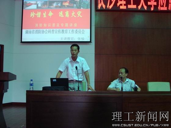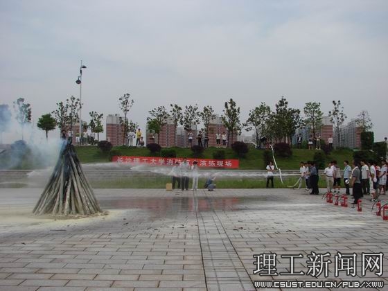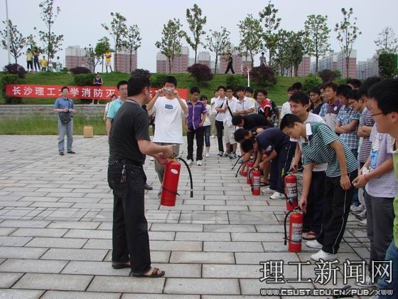 本次活动邀请了长沙市天心区公安消防大队领导和省消防协会专业人员进行了应急疏散、逃生知识讲座。讲座结束后,开展了应急疏散、逃生演练,并燃放了烟雾弹。面对滚滚浓烟,学生们情绪稳定、模拟逃生逼真,有的用毛巾、衣袖捂住口鼻、头戴防毒面具,迅速、有序、安全地撤离出现场。随后保卫人员现场讲解、示范灭火器材的使用方法,并组织学生开展了现场灭火演练,在熊熊大火面前,文先明副校长和同学们一起参与了灭火实地操作体验。