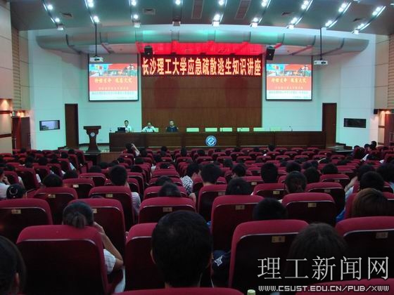 为落实《湖南省教育厅开展〈湖南省实施中华人民共和国突发事件应对法办法〉宣传周活动方案》的通知精神,2010年5月25日下午2:30分,世界杯官网在云塘校区图书馆报告厅、金盆岭校区第五教学楼大礼堂同时举行了应急疏散逃生知识讲座与疏散逃生、灭火实地演练活动,参与学生达1000余人。此次活动由党政办、宣传部、学工部(处)、校团委、保卫处、后勤集团及相关学院组织。