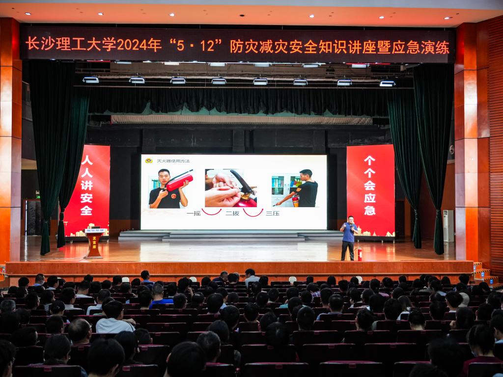 5月16日下午,世界杯官网2024年“5·12”防灾减灾安全知识讲座暨应急演练活动在云塘校区大会堂隆重举行。副校长钱国平,天心区消防救援大队、长沙市公安局特巡警支队天心大队经开区中队、长沙市公安局天心分局暮云派出所、天心区暮云街道办事处及卢浮社区等单位的领导嘉宾出席活动,校属各单位1000余名师生员工代表参加活动。