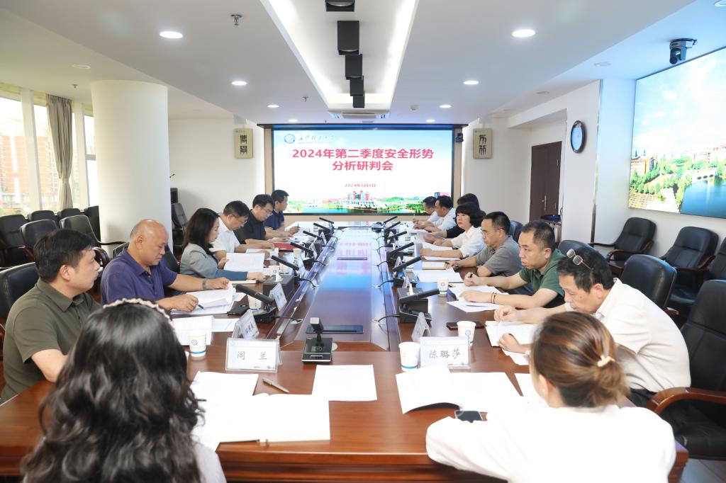 6月6日下午,学校在云塘校区一办公楼六会议室召开2024年第二季度安全形势分析研判会议。校党委书记付宏渊出席会议并作重要讲话。副校长钱国平主持会议。党政办、宣传部、保卫部、统战部、学工部、研究生院、基建处、实验与资产处、合作与交流处、信息化处、后勤中心、团委等单位负责人参会。