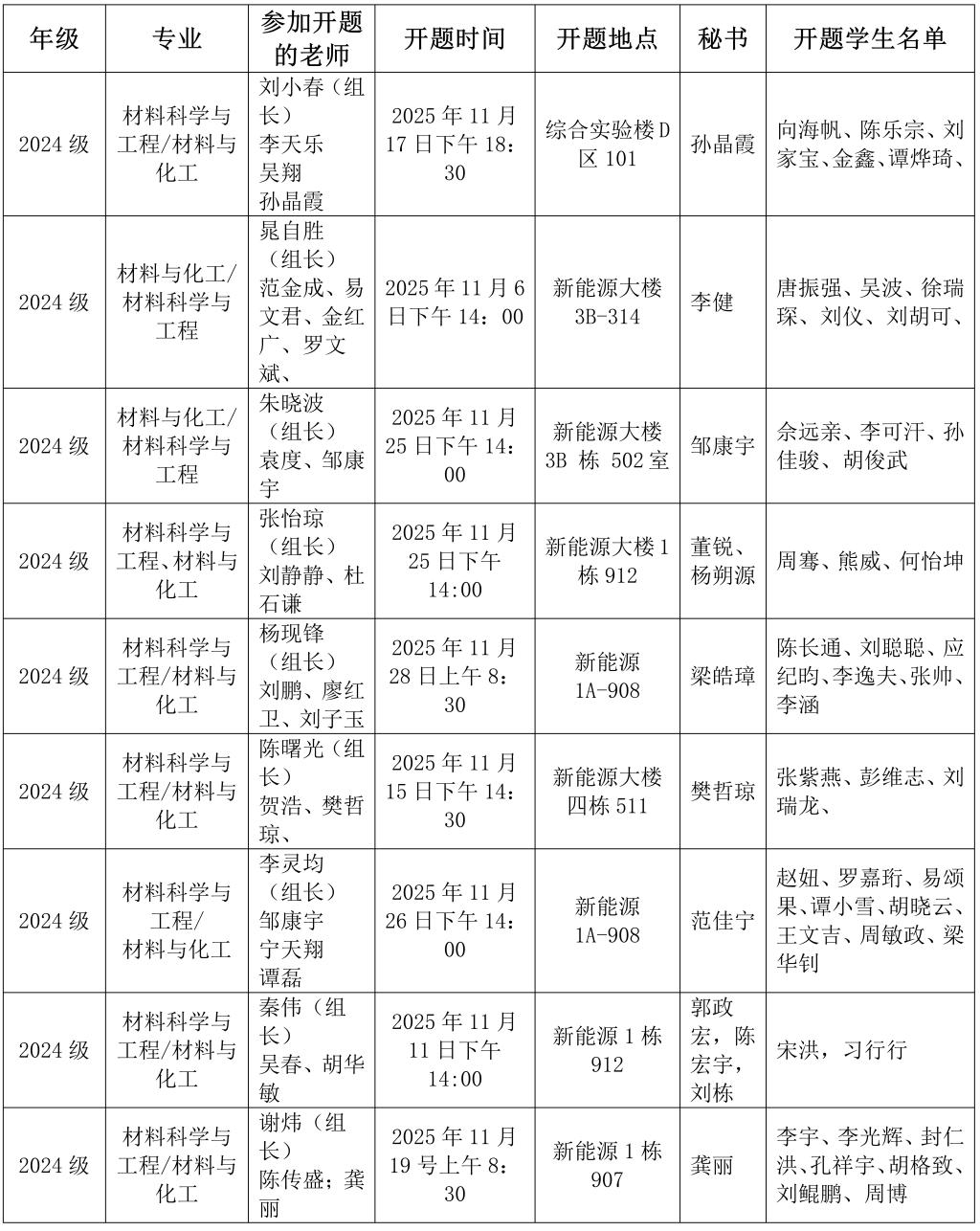 材料科学与工程学院2024级研究生学位论文开题安排表