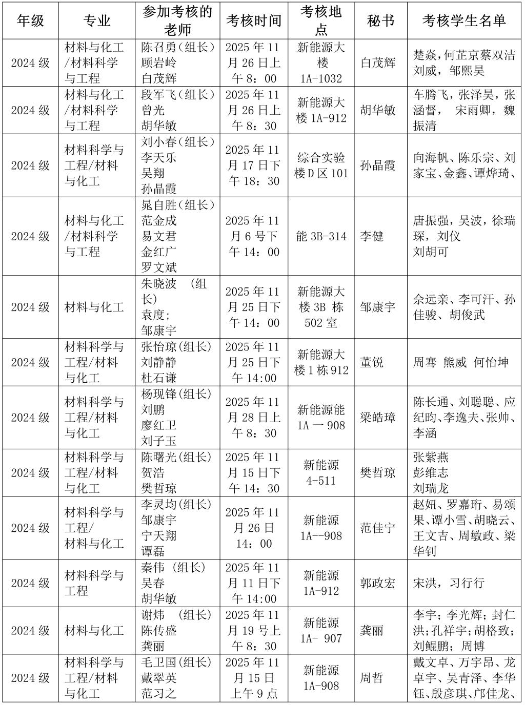 材料科学与工程学院2024级研究生中期考核安排表