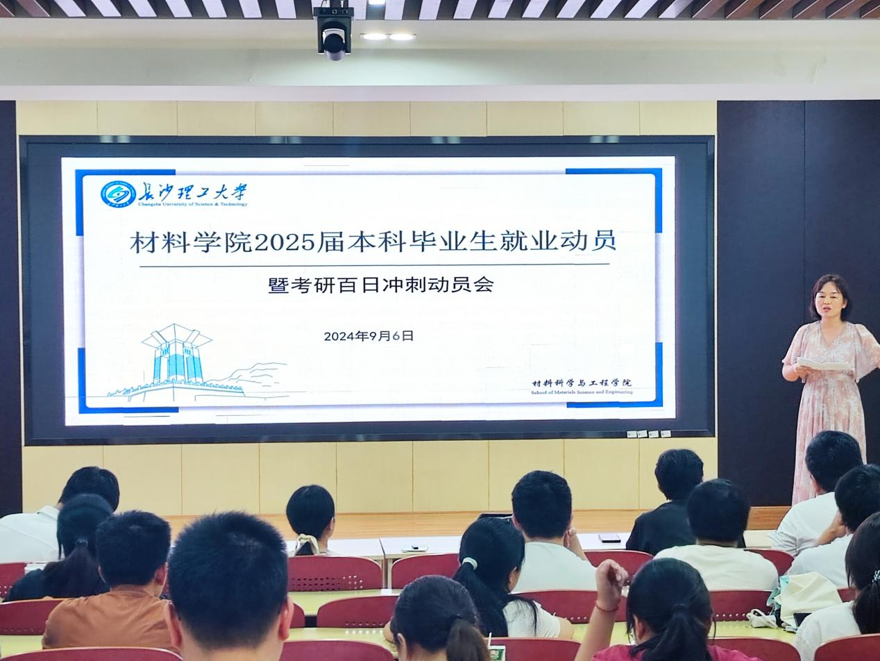2024年9月6日上午,材料学院2025届本科毕业生就业动员暨考研百日冲刺动员大会在工科三号楼A201展开,学院党委副书记邵巧艳、就业专干谢易真、2025届本科毕业生辅导员王志亮主讲,2025届全体毕业生参会。