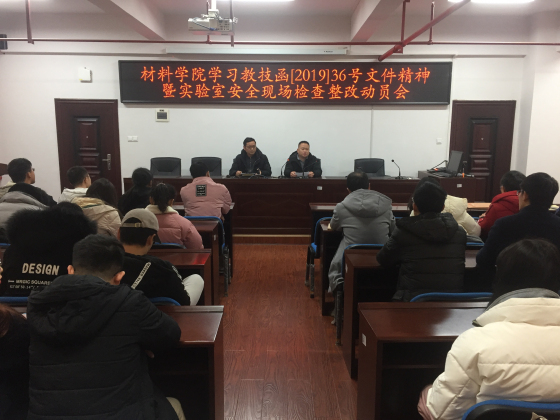 材料学院召开材料学院学习教育部教技函[2019]36号文件精神暨实验室安全现场检查整改动员会