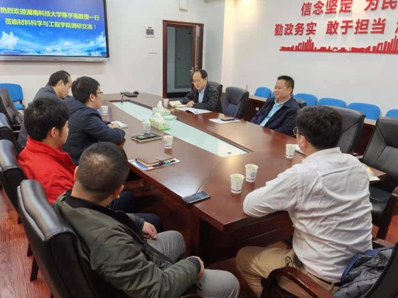 3 月17日,湖南科技大学材料学院副院长陈宇强教授一行5 人到我院进行参观交流。院长毛卫国、副院长杨现锋、实验中心全体老师参加交流座谈。