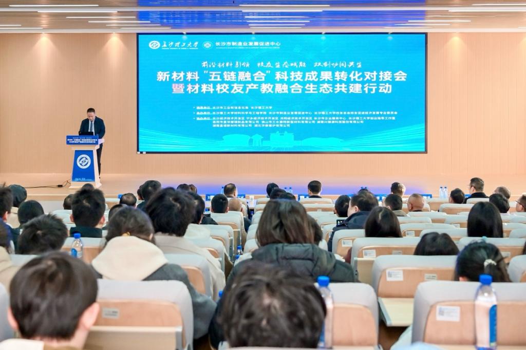 新材料科技成果如何加快走向产业一线?校园科研创新如何精准对接企业真实需求?1月9日,新材料“五链融合”科技成果转化对接会在在线买世界杯平台云塘校区举行。本次大会由长沙市工业和信息化局、在线买世界杯平台指导,在线买世界杯平台材料科学与工程学院、长沙市制造业发展促进中心、在线买世界杯平台校友总会校友促进经济发展专业委员会联合主办,以“前沿材料引领·校友生态赋能·双创协同共生”为主题,聚焦产业链、创新链、供应链、人才链、资金链深度融合,着力推动新材料领域科技成果从实验室走向生产线。