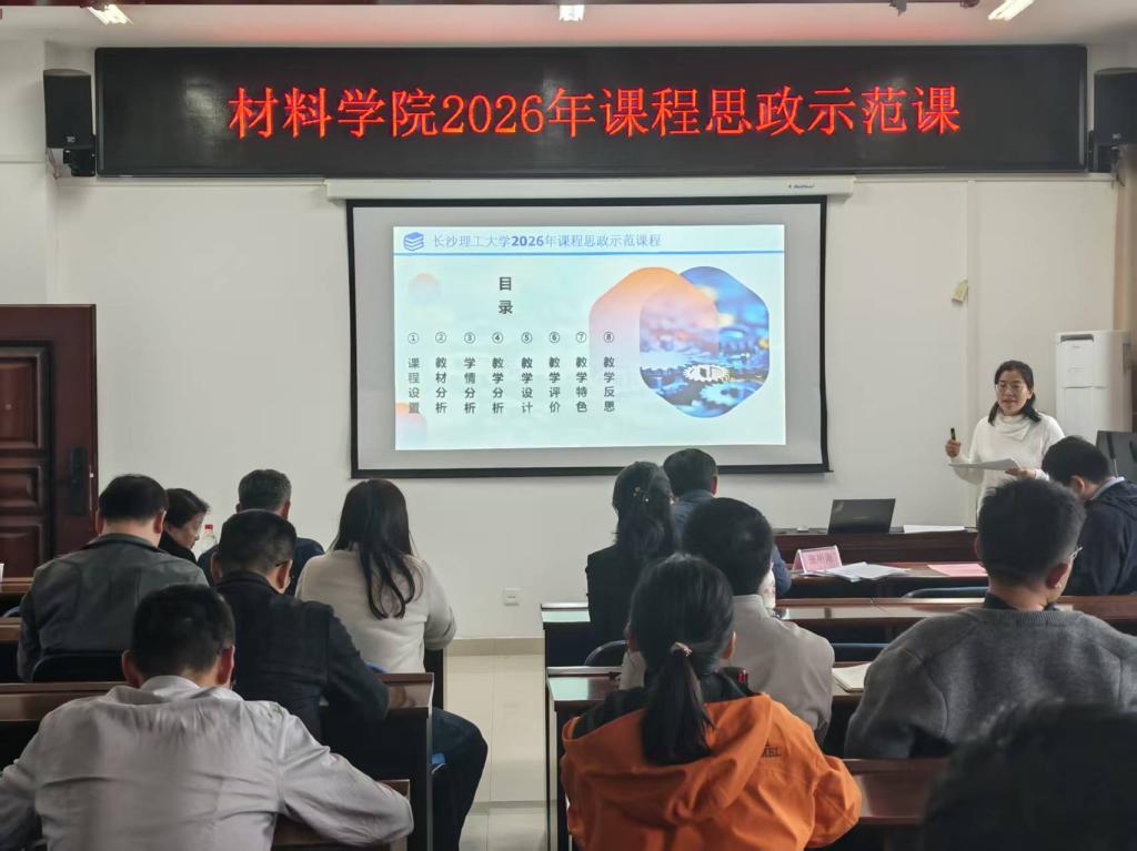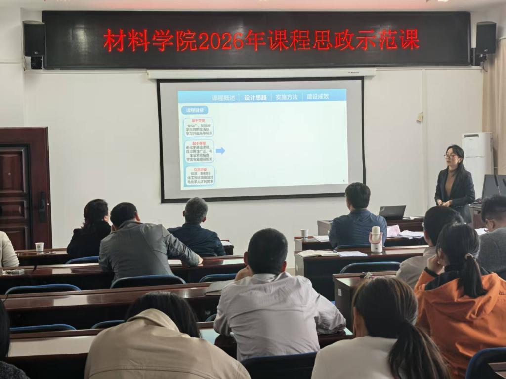 为深入贯彻立德树人根本任务,推动价值塑造、知识传授、能力培养三位一体深度融合,全面提升课程思政建设质量与育人水平,4 月7日下午,材料学院在新能源大楼1-908会议室举办2026年课程思政示范课说课展示活动。学院党政领导班子、全体专任教师共同参加观摩交流。