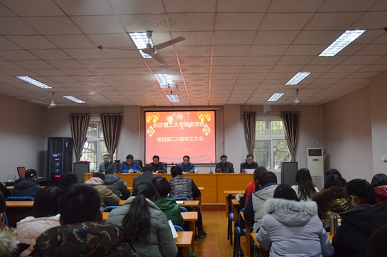 1月17日下午,城南学院第四届二次教职工暨工会会员代表大会在金盆岭2-201召开,全院教职工与会,会议由院党委副书记王明彦主持。