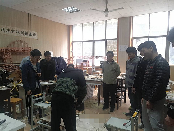 3月14日下午,城南学院党委书记袁剑波带领交通土建系全体辅导员,到五教学院科技创新实践基地看望已经训练三周的省结构设计竞赛候选选手,并现场观摩了他们作品的展示。