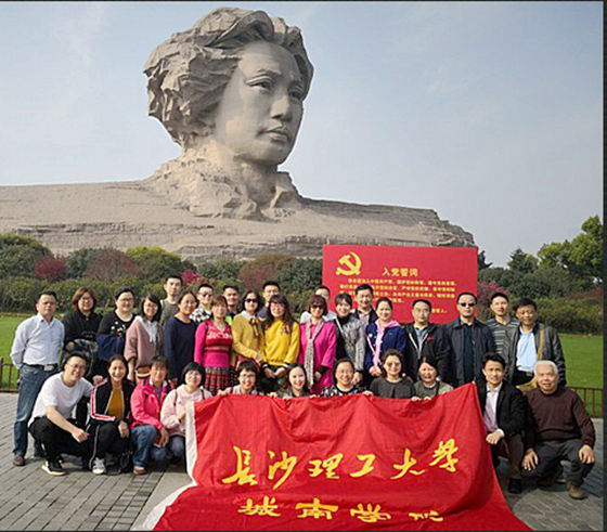 橘子洲景区四面环水绵延数十里,洲上娇艳鲜花巍然盛开、音乐喷泉美轮美奂,隔江便是岳麓山遥遥相对,似天将守护,景色傲人。毛主席诗词《沁园春·长沙》碑刻与山水融为一体,气势恢宏、伟岸壮观。大家沐浴在温暖的阳光中,漫步缓行,赏景赏词。在巨大的毛主席头像前,同志们感受着“漫江碧透,百舸争流” 如画江山的美好,感怀着“问苍茫大地,谁主沉浮”伟人气势的磅礴,并合影留念。
