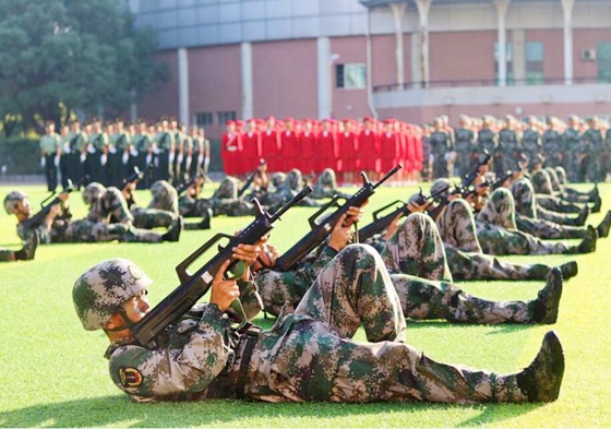 2019级新生进行军训成果汇报表演。军体拳、擒敌拳、匕首操、战术演练方队依次上场,他们行动一致,出拳虎虎生威,踢腿凌厉有力,演练斗志昂扬,势如霹雳。他们是一道亮丽的风景,也是一弯燃烧的霓虹。由各系新生组成的军训方队依次走过主席台,他们步伐矫健、英姿飒爽,全面展示了2019级新生蓬勃向上的精神风貌。
