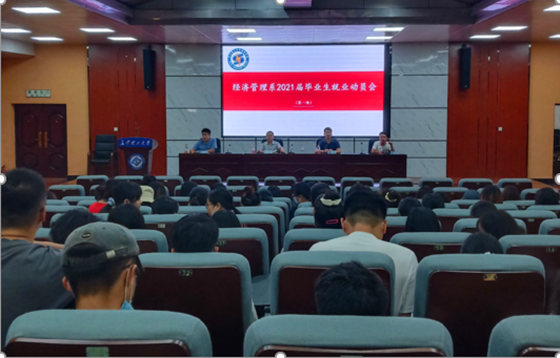 为有效引导2021届毕业生树立正确的就业观和职业观,充分做好就业发展准备, 8月28日下午,经济管理系在四教报告厅召开了2021届毕业生就业首场动员会。院长赵华、系学工办主任周常国、2020届毕业生辅导员王志鹏老师、2021届毕业生辅导员谭怀芝、会计学以及财务管理专业毕业班学生与会。