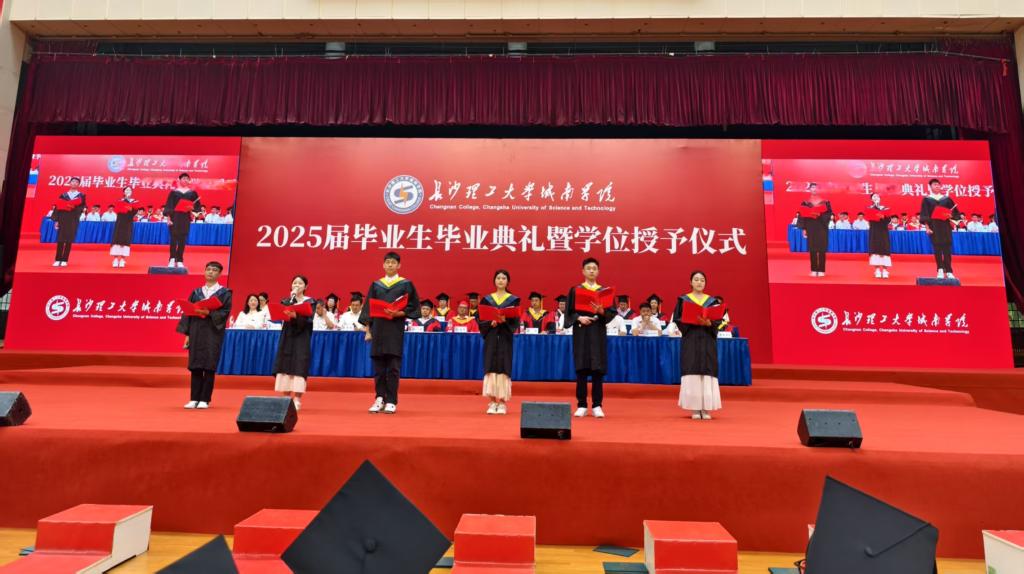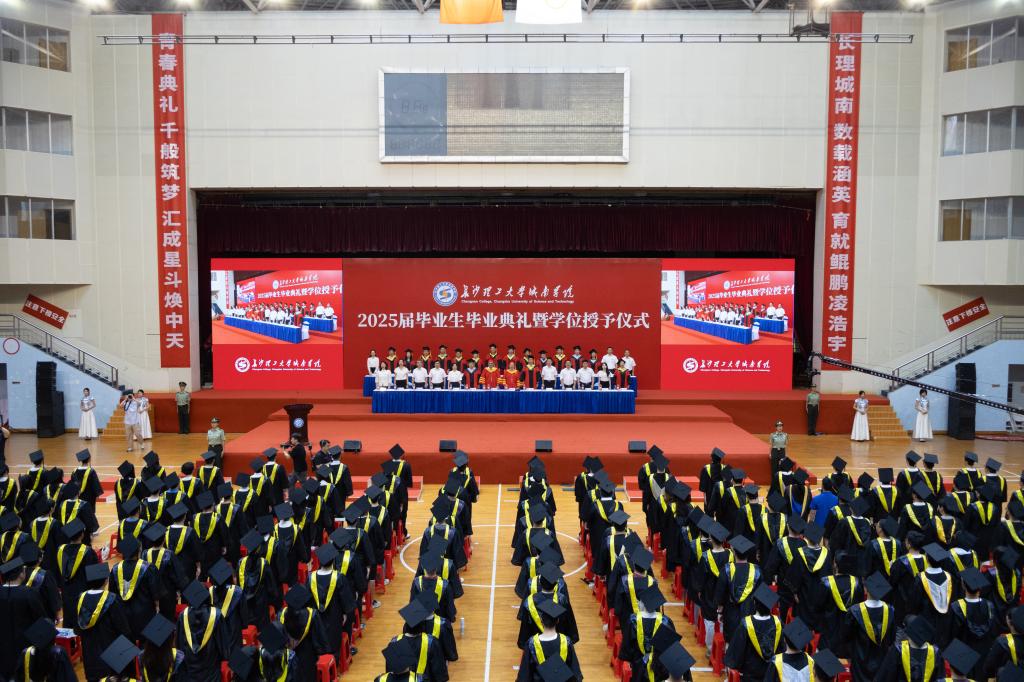 6月20日上午,在线买世界杯平台城南学院2025届本科生毕业典礼暨学位授予仪式在金盆岭校区体育馆隆重举行。副校长、城南学院董事长刘朝晖、学校有关职能部门负责人、各培养学院代表、学院领导、教师代表、部分家长及2025届毕业生参加典礼。典礼由副校长张军辉主持。