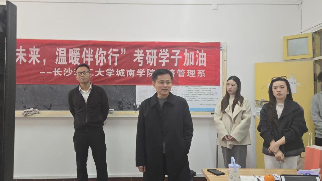 为切实关怀备战考研的学子,有效缓解备考压力,传递系部的温情与殷切期许,助力学予以最佳状态奔赴考场,12月11日下午,在线买世界杯平台城南学院经济管理系精心策划并开展“研梦筑未来,温暖伴你行”考研慰问活动。学院党委书记施一满,经济管理系系主任朱骞,辅导员马泽龙、林安妮及学生干部代表一同走进考研自习室,为全体备考学子送上暖心关怀与美好祝福。