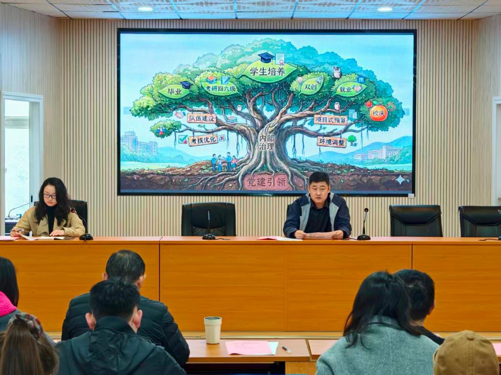 为深入贯彻落实学校党委决策部署,纵深推进全面从严治党,科学谋划学院2026年重点工作,近日城南学院在2教201会议室召开全面从严治党部署暨2026年工作布置会。会议由副院长刘卓明主持,全体教职员工参会。