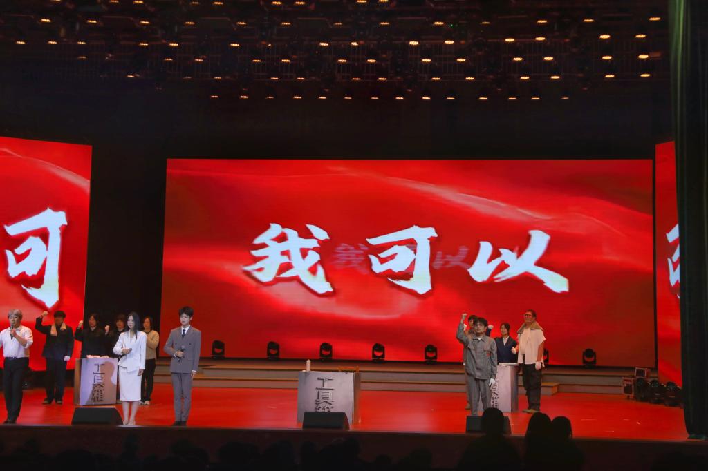 我院师生同台倾情演绎,王志鹏老师饰演的老年朱正芳,沉稳沧桑中蕴含着不改初心的坚定;学生演员们则分别生动塑造了青年朱正芳、研发团队成员及家人等角色。表演尾声,“奋斗的精神,薪火相传!时代的接力棒就在我们手中!”的激昂合诵响彻礼堂,将现场气氛推向高潮,赢得了评委与观众的广泛共鸣与热烈掌声。