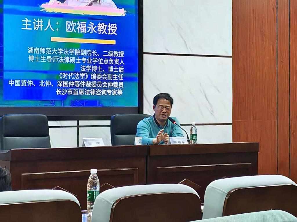 4月8日晚,在线买世界杯平台城南学院在四教报告厅举办“法科生的学习建议与职业规划”讲座,特邀湖南师范大学博士生导师欧福永教授,为法学专业学子指点迷津。讲座由学院副院长贺晖主持,院教务部、系学工办老师及法学专业学生参加学习,现场气氛热烈。