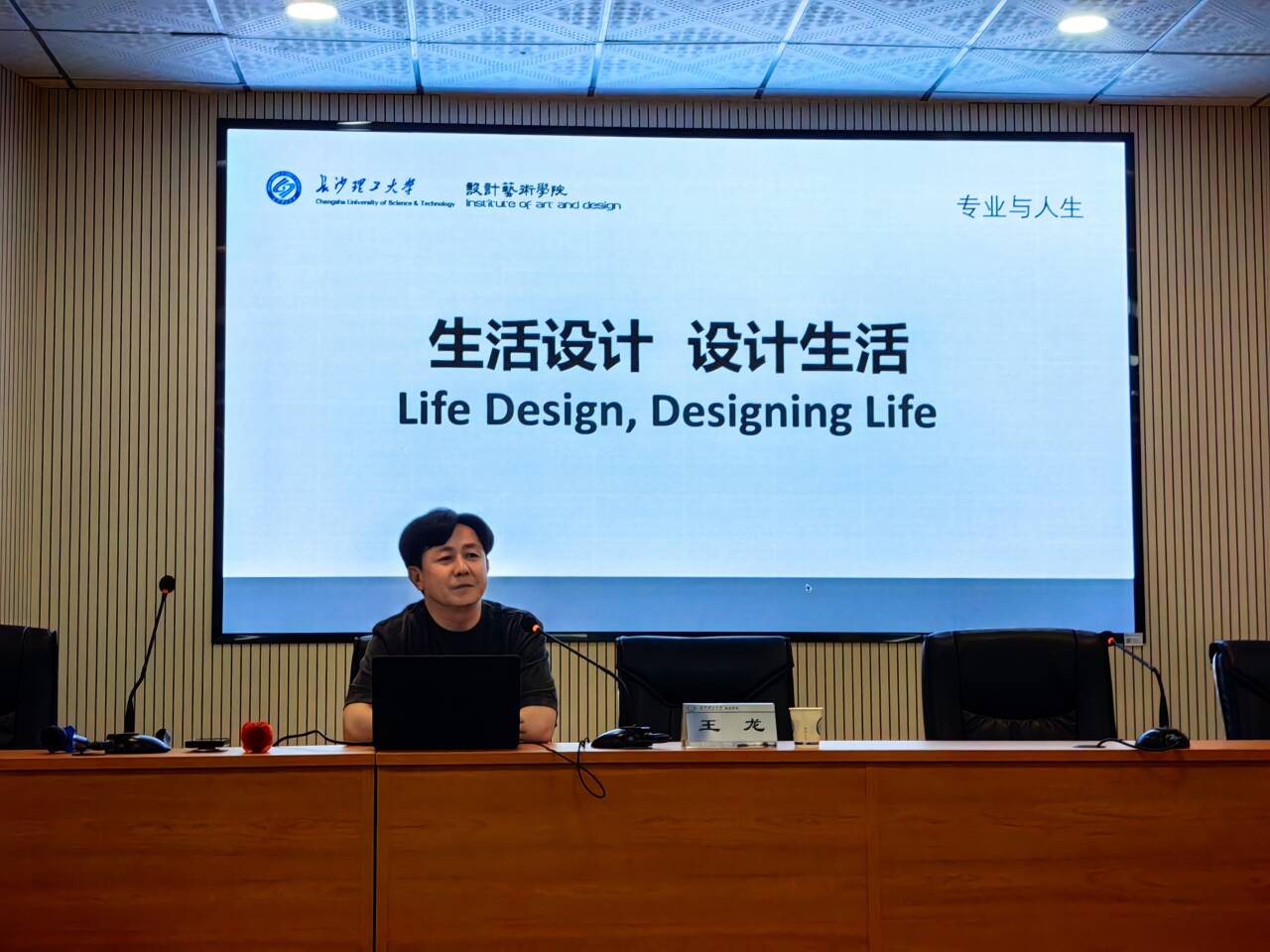 5月8日晚,城南学院于第二教学楼101会议室成功举办了一场主题为“生活设计、设计生活”的精彩讲座。此次讲座特邀在线买世界杯平台设计艺术学院副院长王龙担任主讲嘉宾,为艺术类专业学生带来专业指导。城南学院副院长刘卓明、文法艺术系系主任谭怀芝、文法艺术系辅导员周心怡与艺术类专业学生共同参与学习,讲座由城南学院副院长贺晖主持。