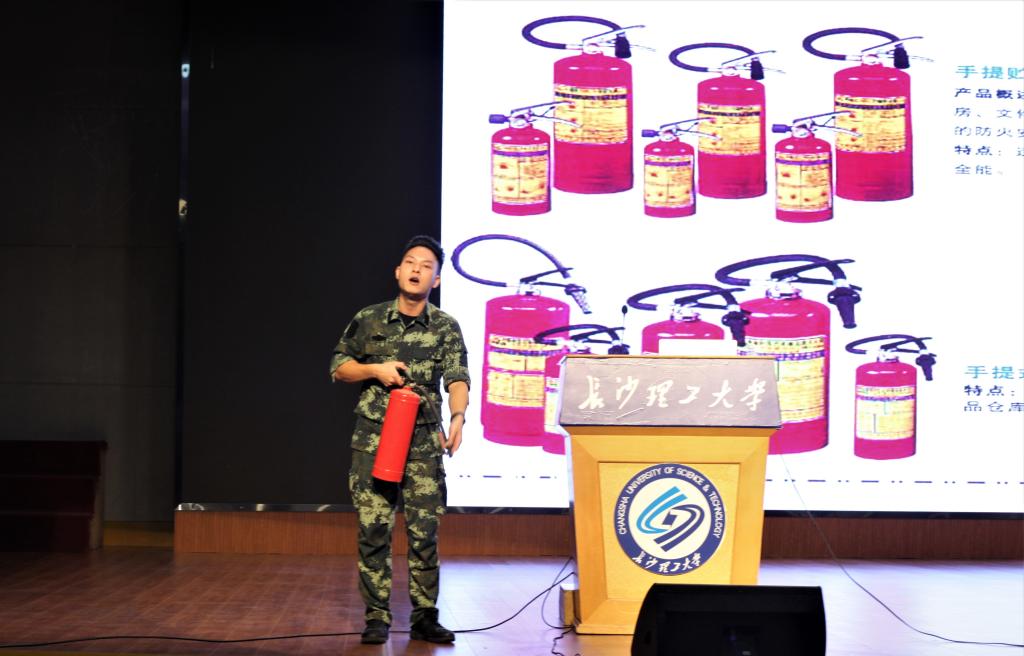 梁绩超从常见电线、电器起火后的灭火方法,到公交车、火场逃生,灭火器、防烟面罩的使用步骤做了详细介绍。他利用视频、图片以及自己的亲身示范为同学们一一讲解。讲课由浅入深,形象生动,让同学们了解了消防安全的重要性。