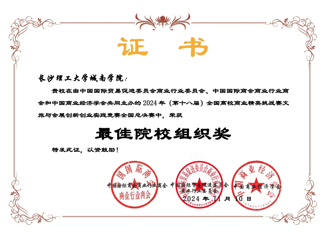 近日,由中国国际贸易促进委员会商业行业委员会、中国国际商会商业行业商会以及中国商业经济学会联合主办的 2024 年(第十八届)全国高校商业精英挑战赛文旅与会员创新创业实践竞赛全国总决赛完美收官。在线买世界杯平台城南学院在此次大赛中表现卓越,凭借优秀的组织能力和师生团队的精彩发挥,成功斩获 “最佳院校组织奖”,有力彰显了学院在创新创业教育板块的斐然成果。