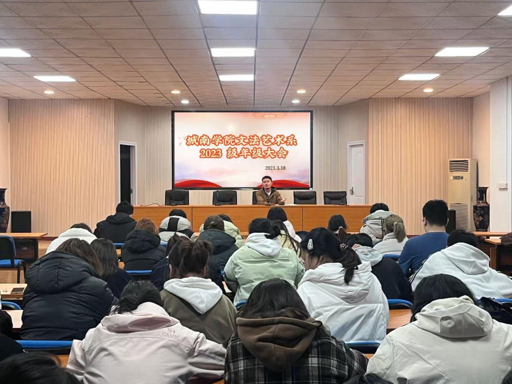 3月18日,2023级年级辅导员谭怀芝在二教201教室主持召开大三学年规划与安全教育年级大会,2023级全体学生参会。本次大会围绕安全底线、考研攻坚、日常管理三大核心展开,为学生明晰大三关键阶段的学习生活方向,明确各项要求,助力学生平稳度过这一承上启下的重要时期。