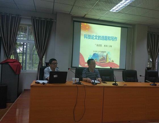 陈浩凯围绕如何利用网上工具帮助选题、主编选择科技论文的标准、科技论文的写作技巧三个方面展开讲述。他特别强调了要学会从科学引文索引(Science Citation Index ——SCI)、社会科学引文索引(SSCI)、艺术与人文科学引文索引(A&HCI)以及中国知网等数据库进行选题,掌握学科前沿,寻找写作思路,找到论文写作的突破点。他以严谨的治学态度,专业理论结合具体案例,深刻地分析了科研论文写作中存在的突出问题,逐一提出了科学的指导意见,让全体人员受益匪浅。
