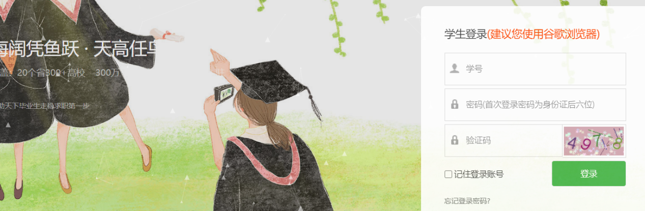 1.登录在线买世界杯平台就业网(http://cslg.bibibi.net/index)点击“学生登录”,输入账号密码(账号为学号、首次登录时密码为身份证后六位)进行登录。