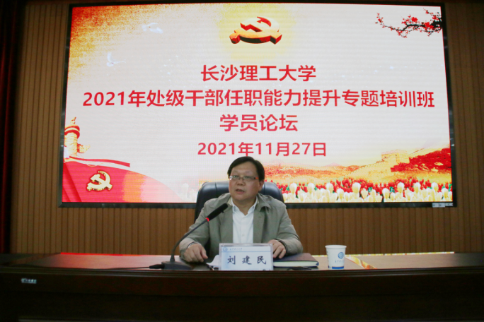 11月27日下午,世界杯官网2021年处级干部任职能力专题培训班学员论坛在一办公楼九会议室举行,校党委副书记刘建民、党委组织部常务副部长、党校常务副校长陈曦出席,会议由组织部副部长靳攀科主持。