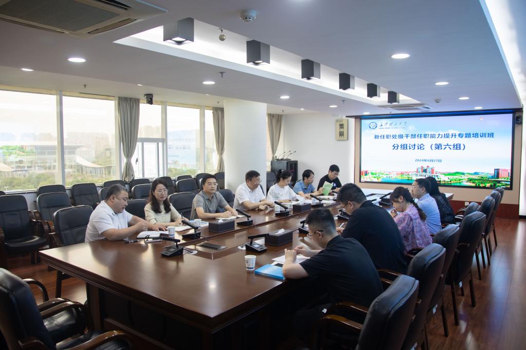 6月27日下午,校党委书记付宏渊来到云塘校区一办公楼六会议室,与学校新任职处级干部任职能力提升专题培训班第六组学员进行了交流。