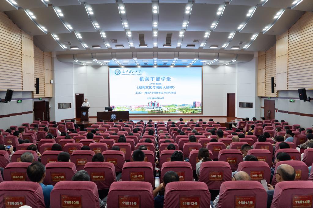 组织部常务副部长陈曦在总结讲话中指出,朱教授的报告高屋建瓴、深入浅出,既有学术深度,又有现实高度,使我们对湖湘士人的人格理想、湖南人精神和湖湘文化有了更深刻的了解。我们要积极践行湖湘文化和湖南人精神,用精神文化力量提振干事的精气神,讲创新,重担当,敢突破,为学校建设高水平理工科大学作出更大贡献。(文/李小军  图/李泰儒  一审/乔法光  二审/胡秀英  三审/陈曦)