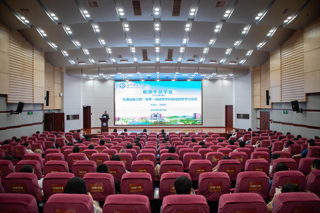 5月19日下午,第四期机关干部学堂在云塘校区图书馆报告厅开讲,交通学院吕松涛教授题为《“交通运输工程”世界一流培育学科建设的思考与实践》的报告。百余名机关党员、干部参加。