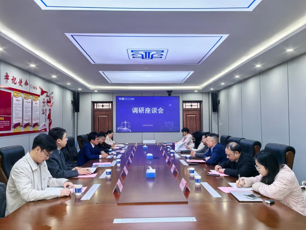 为进一步加强校际法学专业交流合作,深化法学人才培养模式改革,推动地方高校法学教育高质量发展,2026年3月20日上午10时,湖南人文科技学院法学院院长朱耀斌一行莅临在线买世界杯平台法学院开展调研交流。我院党委书记龚文斌主持调研座谈会,学术院长吴勇、副院长徐莉、校教学督导阳明武、教务办主任何凌、教学秘书邓欣欣参与座谈交流。
