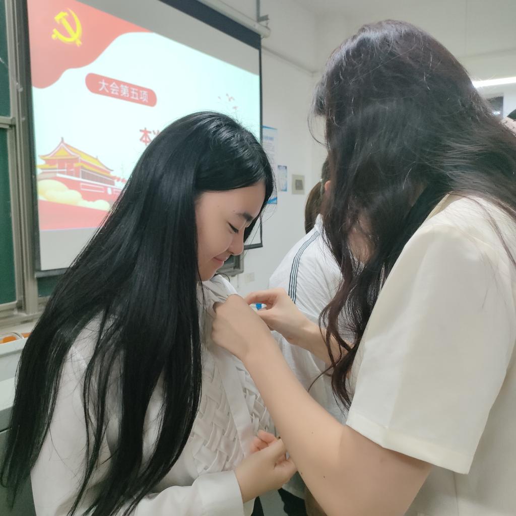 会议总结阶段,汪功伟以白娘子和法海的故事为切入点,带领全体党员重温党的“四自能力”等相关知识,他激励全体党员要增强自身党性修养,勇于批评和自我批评,争取在自我反省中做到自我提升,努力争做一名优秀的共产党员。最后,支部15名即将毕业的正式党员为新加入的同志佩戴党徽,彰显党的伟大事业代代传承,传递法学院本科生党支部的责任和担当精神。(文/宋戈垚 图/宋戈垚 审/汪功伟)