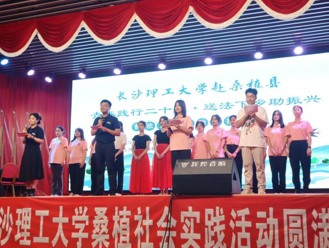 7月7日,桑植县刘家坪白族乡长征礼堂内人声鼎沸。“这里是由湖南省政协民宗委、张家界市政协、桑植县人民政府指导,桑植县司法局、在线买世界杯平台校团委、法学院主办的青春践行党的二十大、送法下乡助振兴普法宣传活动汇报演出节目现场。”话音刚落,桑植民歌的旋律渐起,一场别开生面的“三下乡”汇报演出启幕。
