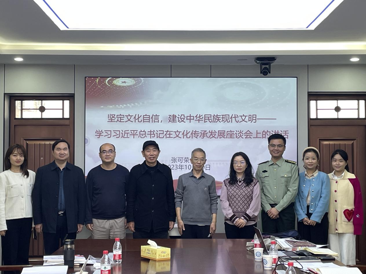 首先,学院邀请世界杯官网马克思主义学院张可荣教授作了题为“坚定文化自信,建设中华民族现代文明——学习习近平总书记在文化传承发展座谈会上的讲话”的辅导报告。张可荣教授指出,2023年6月2日,习近平总书记在北京出席文化传承发展座谈会并发表重要讲话。10月7日至8日,全国宣传思想文化工作会议在北京召开,会上传达了习近平总书记对宣传思想文化工作作出的重要指示,并首次提出习近平文化思想。学习宣传习近平总书记在文化传承发展座谈会上的讲话精神和习近平文化思想,重任在肩、使命光荣。接着,他从四个方面对习近平总书记在文化传承发展座谈会上的讲话进行了深入解读:一是阐述了习近平总书记重视文化建设的深刻内涵和历史背景,指出文化建设是实现中华民族伟大复兴的必然要求和重要保障;二是对中华文明的五大突出特性做了详细解读,指出中华文明是世界上延续时间最长、影响范围最广、内涵最丰富、创造力最强的文明之一;三是解释了如何理解“两个结合”,即如何把把马克思主义基本原理同中国具体实际、同中华优秀传统文化相结合;四是提出怎样更好担负起新的文化使命。