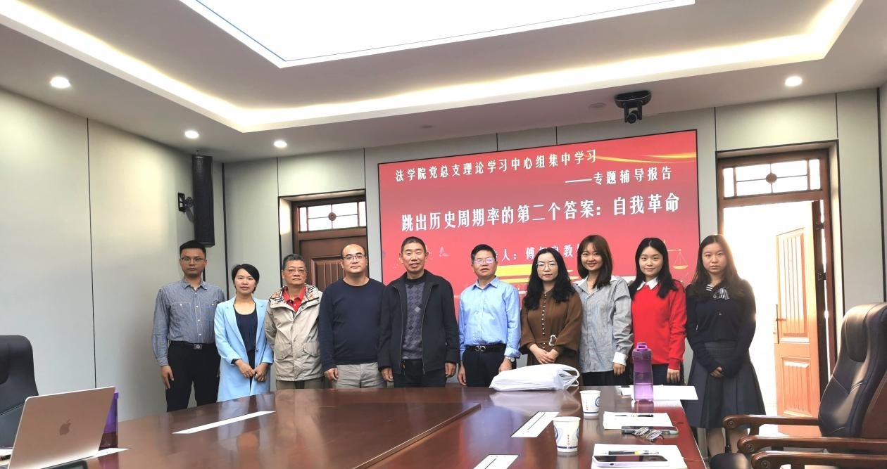 10月24日上午,法学院党总支理论学习中心组在金盆岭校区四号教学楼313会议室开展党风廉政建设和反腐败工作专题学习。党总支书记田兴洪主持会议,学院全体党政班子成员、行政党支部全体成员及全体辅导员参加学习。