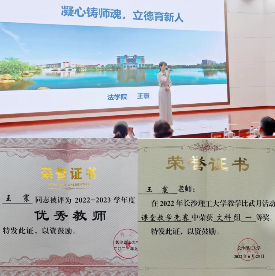 在同事们眼中,王寰老师也是一位勤奋工作、无私奉献的好老师。她的教学方法独特,深受学生们的喜爱和尊敬。她对待工作认真负责,对待同事热情友好,赢得了大家的广泛赞誉和尊重。2023年11月,王寰老师荣获“湖南省高等院校青年骨干教师”称号。
