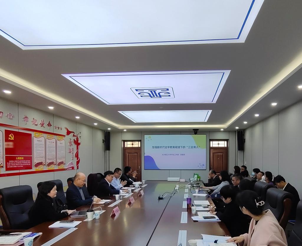 11月21日下午,法学院在金盆岭校区四教学楼313会议室召开“新法科三全育人体系”建设专题务虚学习研讨会暨“三全育人”项目建设经验交流会。中南大学法学院党委书记李华东、在线买世界杯平台学工部部长邱国良出席会议并讲话,院党总支副书记、副院长汪功伟主持会议,学院相关领导及全体教职工参加会议。