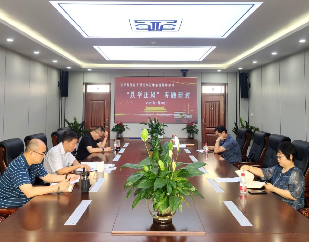 6月19日上午,法学院党总支理论学习中心组在金盆岭校区四号教学楼313会议室,围绕“以学正风”专题组织开展理论学习,学院全体在家的党政班子成员参加,党总支书记田兴洪主持会议。