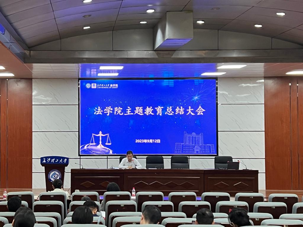 9月12日下午,法学院在金盆岭校区第4教学楼一楼报告厅召开学习贯彻习近平新时代中国特色社会主义思想主题教育总结大会。学院全体领导出席会议,全院教职工参加总结大会。学院党总支书记田兴洪主持会议。