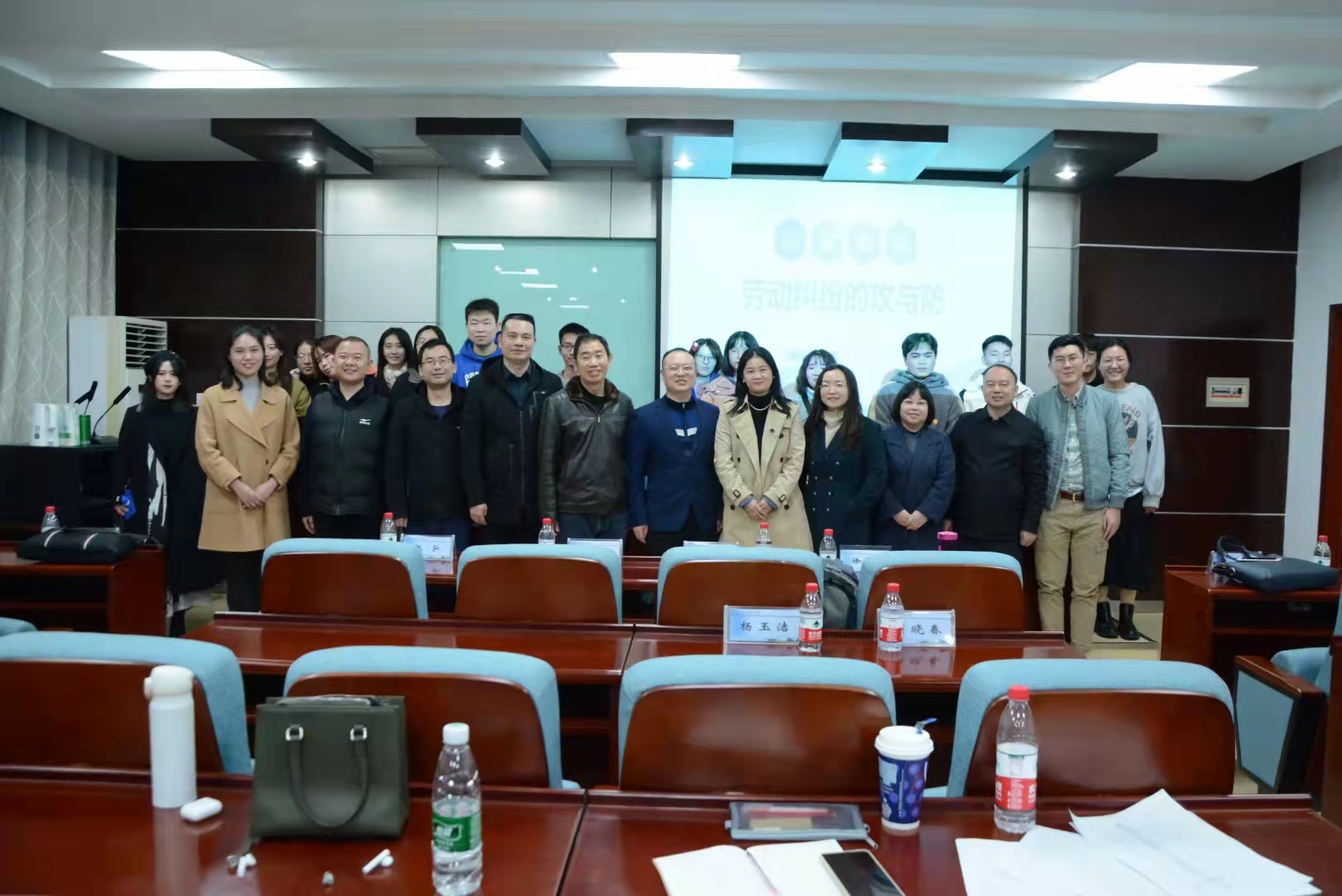 11月23晚7点,我院于金盆岭校区7教212室举办题为“以案说法——劳动纠纷的攻与防”的讲座。会议邀请到长沙市雨花区人力资源和社会保障局朱剑峰副局长主讲。出席会议的有雨花区人社局政策法规科科长曹江林、仲裁管理科科长张弘、律师志愿团代表杨玉洁律师、普法宣讲团成员记者胡晓春,我院院长张敏纯、副院长徐莉、杜卫红、黄周炳、阳明武等教师代表。讲座由徐莉副院长主持。