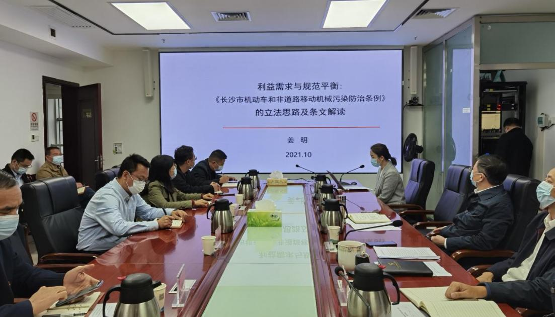 姜明副教授以《利益需求与规范平衡:<长沙市机动车和非道路移动机械排放污染防治条例>的立法思路及条文解读》为题,就《长沙市机动车和非道路移动机械排放污染防治条例》(以下简称《条例》)的立法思路与主要内容进行了全面解读,并围绕全面推进依法治国背景下行政机关如何依法行政、地方环境法治面临的主要任务、地方环境立法中的利益冲突与平衡等问题进行了阐述。《条例》是全国第一部市级层面规范机动车和非道路移动机械排放污染防治协同立法的地方性法规,姜明副教授作为起草团队的外部立法专家全程参与了立法的制定工作,目前该《条例》已由长沙市第十五届人民代表大会常务委员会通过,湖南省第十三届人民代表大会常务委员会批准,将于2022年1月1日起施行。