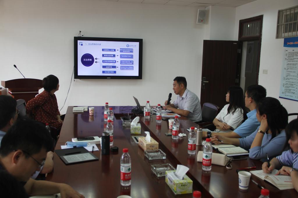 田兴洪在报告中首先阐述了法治思维的内涵与外延。他解读了法治思维五个方面的内涵,即法律规则至上思维、职权法定思维、法定程序思维、公民权利保障思维、法前平等思维,并阐述了法律思维、法治思维与法理思维的联系与区别。接着,他阐述了依法办学对于本科人才培养的重要意义,强调要依照我国《教育法》《高等教育法》等法律法规和政策办学,努力培养德、智、体、美、劳等方面全面发展的社会主义建设者和接班人。最后,他阐释了培养大学生法治思维的重要意义、分析了大学生法治思维的衡量标准、介绍了理工科高校大学生法治思维的现状,并从增设大学生的法治教育公共选修课、实现课堂法治教学与课外法治实践的有机统一、加强校园法治文化环境建设、发挥法律专业大学生的带头引领作用,提高法治思维能力等方面分析了理工科高校大学生法治思维的培养途径。目前,法学系正在学校学工部(处)的大力支持和帮助下开展“1234”制下“三全三导”一体化法律服务育人体系建设,旨在为全校学生提供法律咨询服务并开展法律志愿服务活动,力争对于全校学生法治思维的培养做出应有的贡献。(文/熊文娟 审/田兴洪)