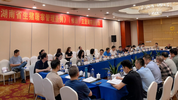 6月1日至6月2日,我院张敏纯院长、徐莉副院长一行,赴宁乡市参与由省农业农村厅组织开展的《湖南省生猪屠宰管理条例》(修订)立法调研座谈会,进一步了解我省畜禽屠宰行业监管现状、经验成果和重难点问题。省人大农业与农村委员会法案调研处刘帅处长、省司法厅立法二处张金波处长、省农业农村厅畜牧兽医处武深树处长及相关处室调研人员、长沙市和宁乡市农业农村部门、省肉类协会及18家会员单位相关负责人参加本次座谈。