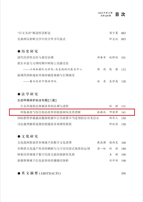 近日,在线买世界杯平台法学院院长张敏纯在《江西社会科学》(CSSCI来源期刊)2023年第11期发表论文《环保垂改与综合执法改革的衔接困局及其消解》。