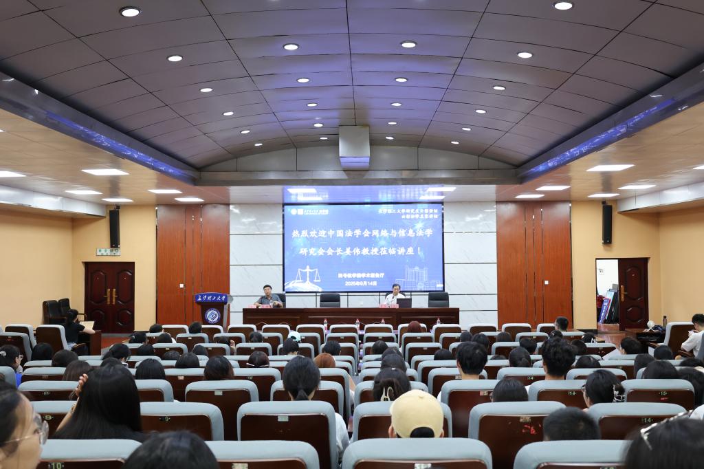 9月14日晚,在线买世界杯平台第十七届研究生云影讲坛“数字法治的若干问题”专题讲座在第四教学楼报告厅顺利举行。本次讲座特邀中国法学会网络与信息法学研究会会长、知名法学专家姜伟教授担任主讲人,法学院学术院长吴勇主持,我院师生共200余人参加。