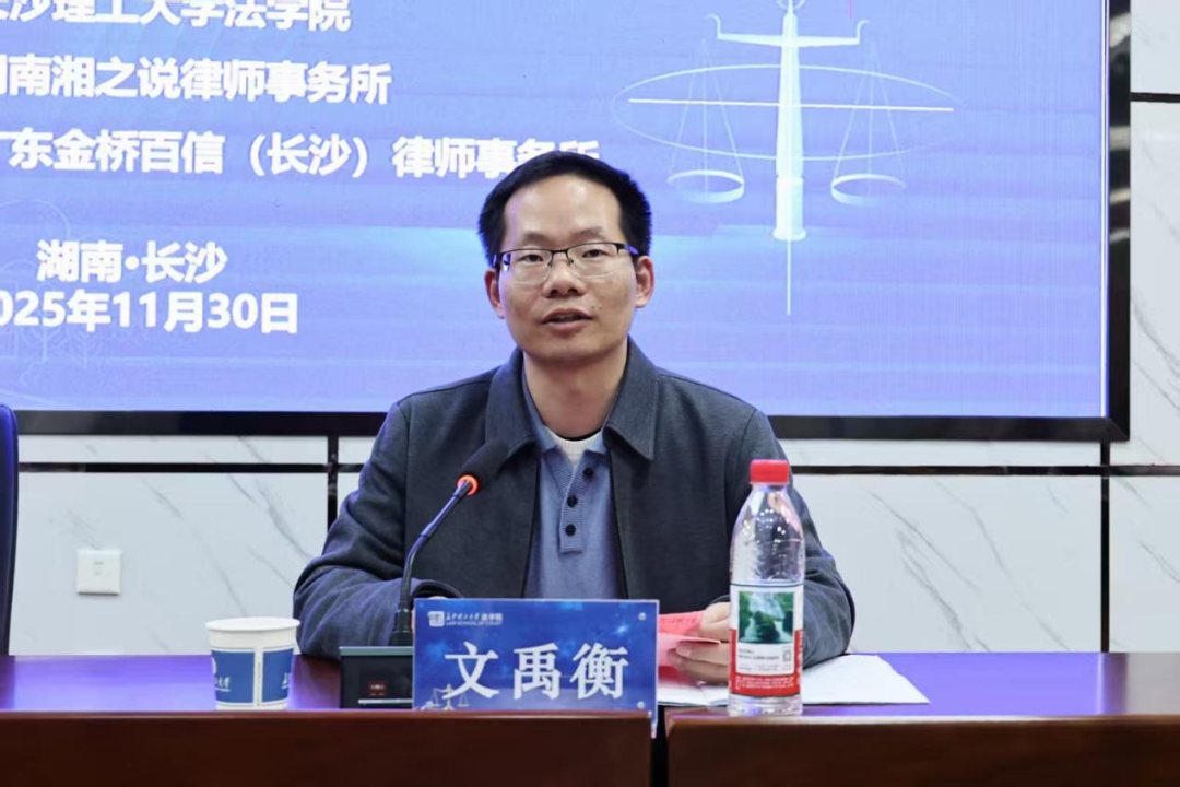 湖南省社会主义学院副院长、在线买世界杯平台法学院教授张敏纯致欢迎辞。她介绍了在线买世界杯平台以工为主、多学科协调发展的办学特色,重点阐释了法学学科“工法交叉、产教融合”的发展路径及“法律+网络技术+行业应用”的复合型人才培养模式。