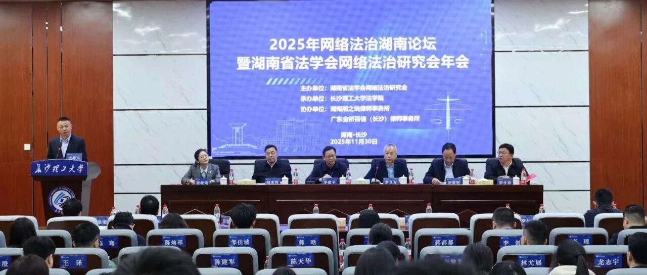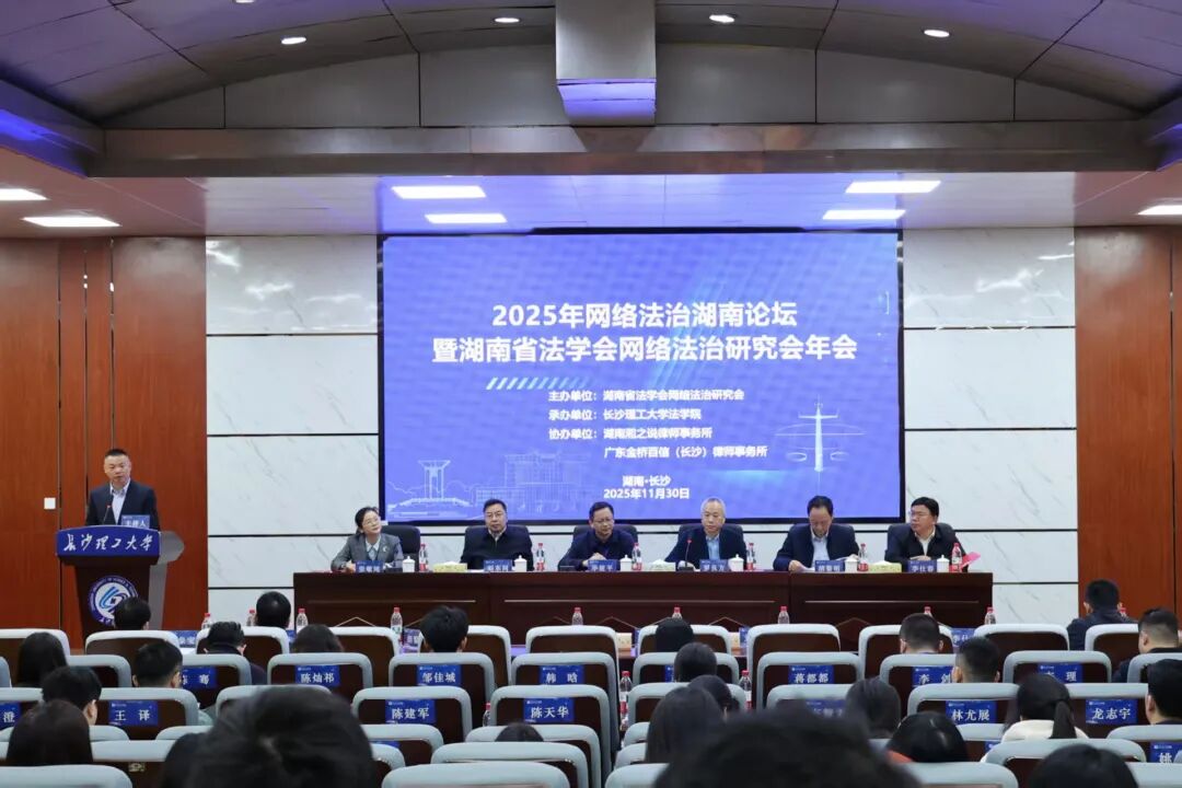 11月30日,2025年网络法治湖南论坛暨湖南省法学会网络法治研究会年会、在线买世界杯平台第二十一届研究生博力学术论坛“数智法治”专题论坛在在线买世界杯平台金盆岭校区隆重举行。本次会议由湖南省法学会网络法治研究会主办,在线买世界杯平台法学院承办,湖南湘之说律师事务所、广东金桥百信(长沙)律师事务所协办,来自省内外高校、科研院所、司法实务部门、律师行业,以及企业界的百余位专家学者、实务工作者与硕博士研究生齐聚一堂,围绕网络法治领域的前沿热点与实务难题展开深度研讨。
