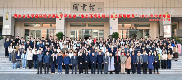 1月10日,湖南省法学会环境资源法学研究会“生态环境法典与生态环境检察”2025年学术年会在湖南师范大学成功举办。本次会议由湖南省法学会环境资源法学研究会、湖南省法学会检察学研究会主办、湖南师范大学承办,高等教育出版社提供支持,吸引了来自省内外实务部门及高校的250余名专家学者参与。湖南省社会主义学院副院长、在线买世界杯平台法学院张敏纯教授,在线买世界杯平台法学院学术院长吴勇教授,以及学院姜明教授、黎梦兵老师、刘娉老师与部分研究生受邀出席了年会。